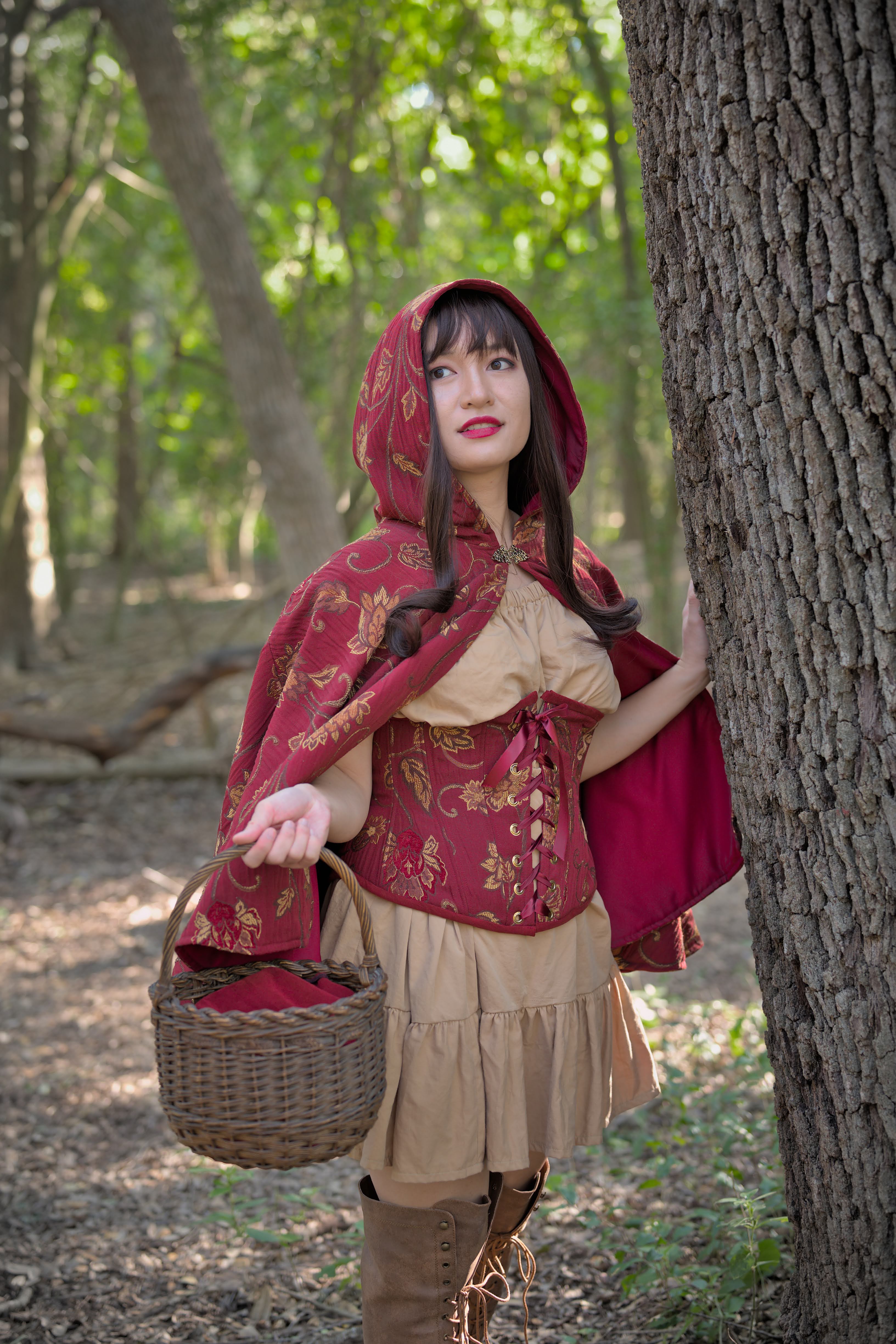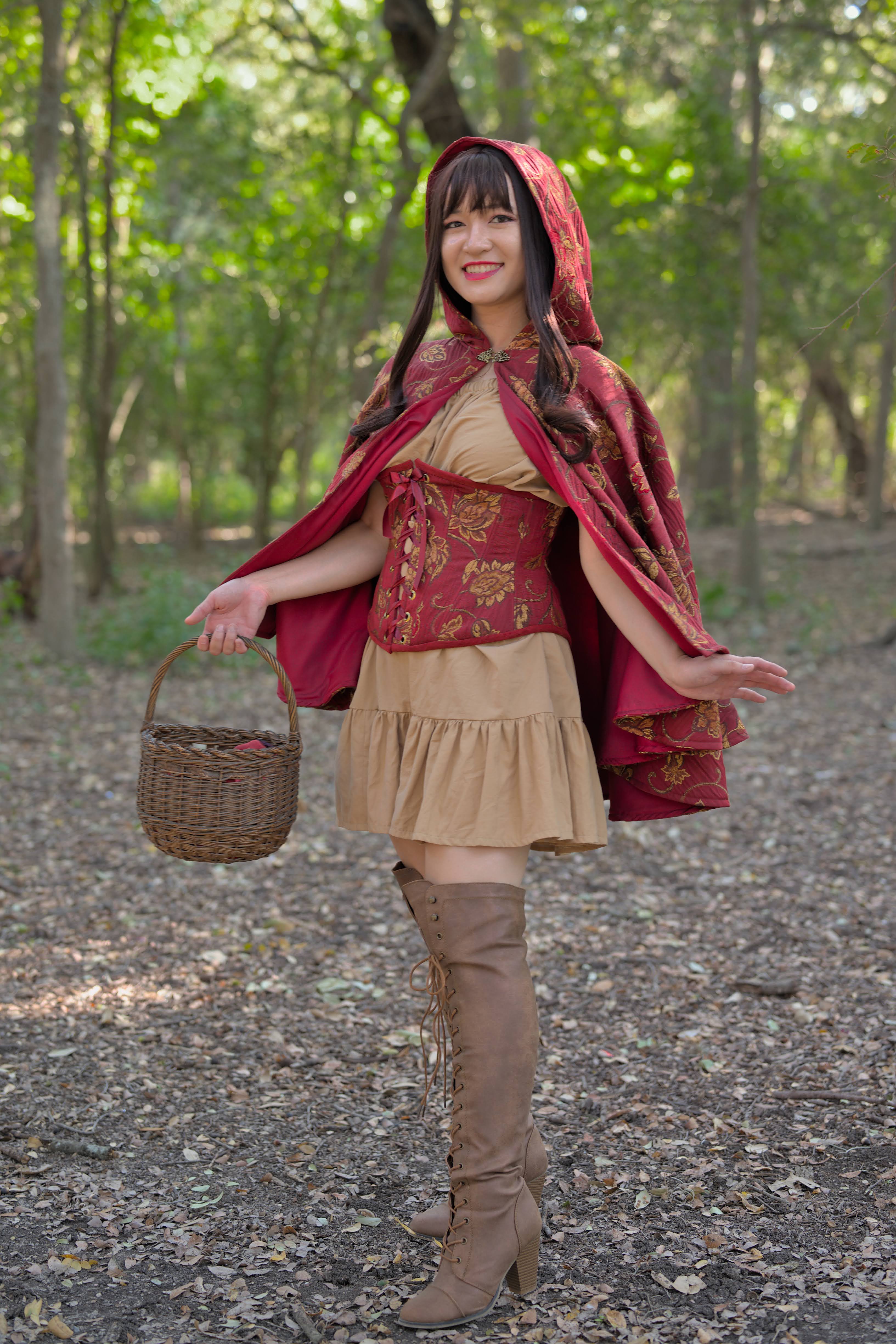 When I found this curtain at Goodwill, I thought it would be perfect for a Fall, woodsy look! I wanted to recreate a specific character and ultimately decided upon Little Red Riding Hood. The curtain was barely large enough to create both the cape and corset! Out of all my upcycled pieces, this one most closely combines cosplay with sustainability. It inspires me to keep finding creative ways to incorporate sustainability into my cosplays!