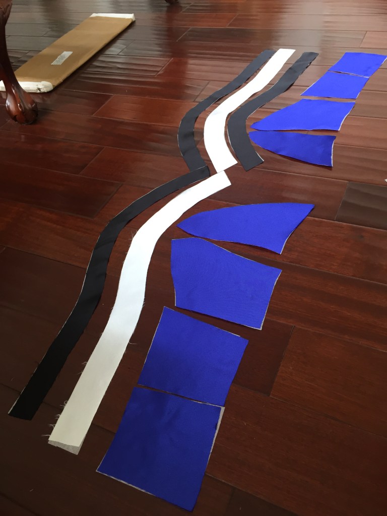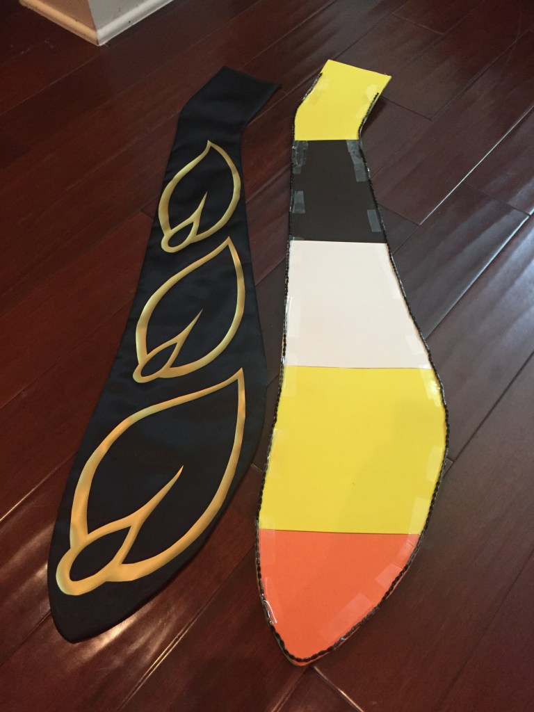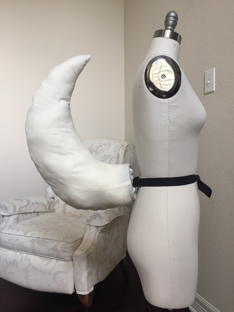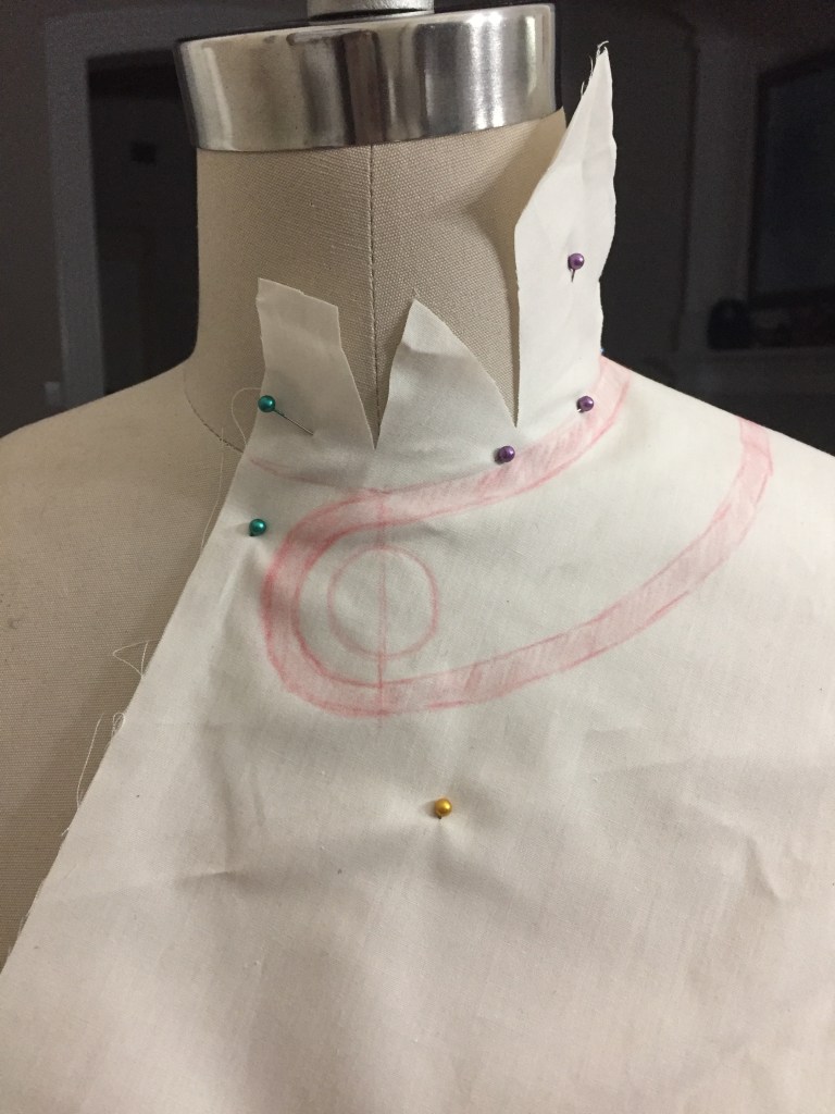 The upper conical portion of the sleeves were reinforced with thick interfacing so that they would stand on their own. The obi tails (or “wings) tuck into the back of the bodice and were reinforced with craft foam and wire to give them shape.