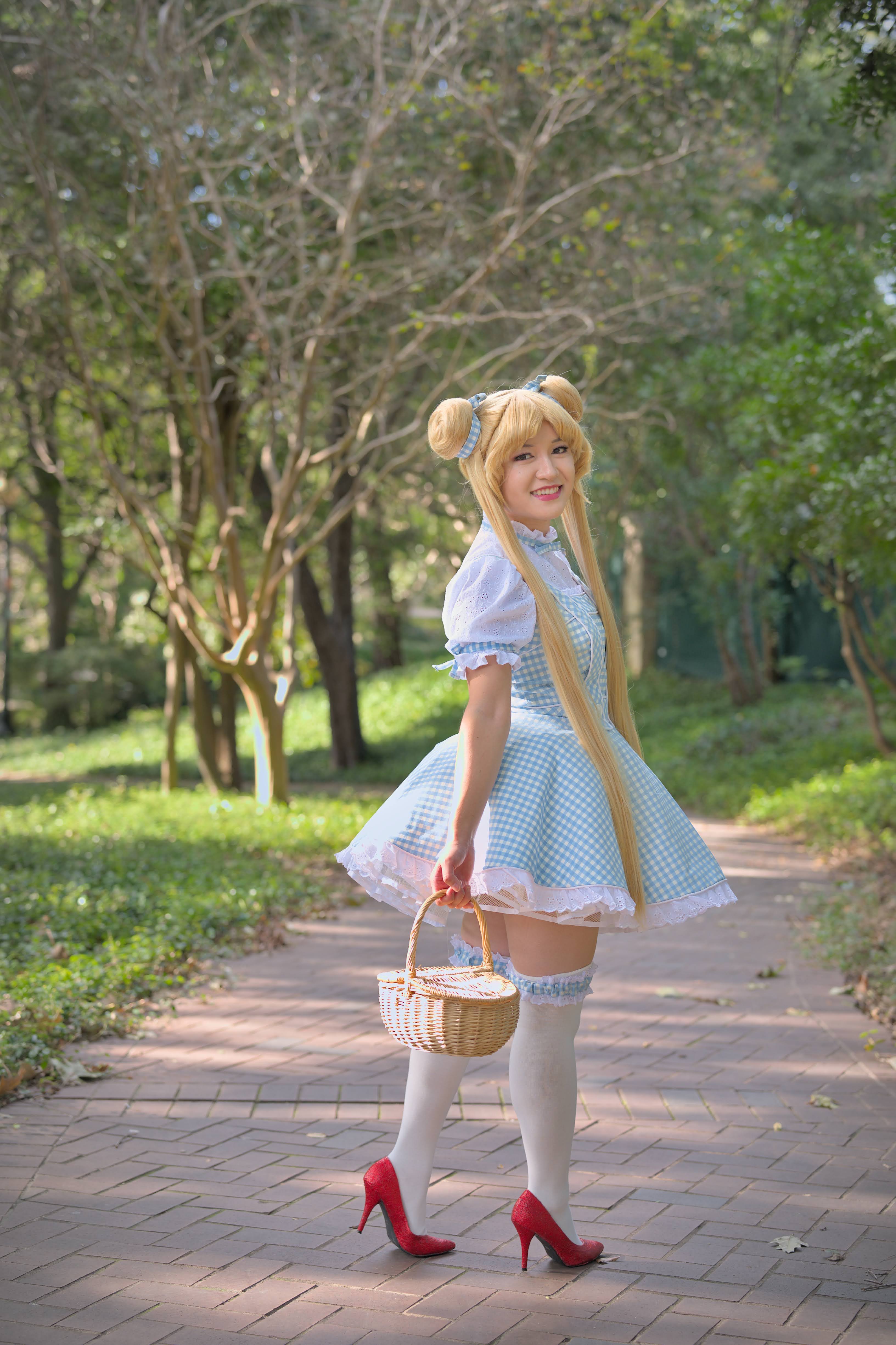 This cosplay is based on the Usagi of Oz character artwork by Mamobot. I love that this design allowed me to reuse my Princess Serenity wig, which saved time and money. Since I also happened to already have the perfect blue plaid fabric for this dress, I was able to put together this cosplay in about four weeks, making it the fastest cosplay I’ve made so far!
